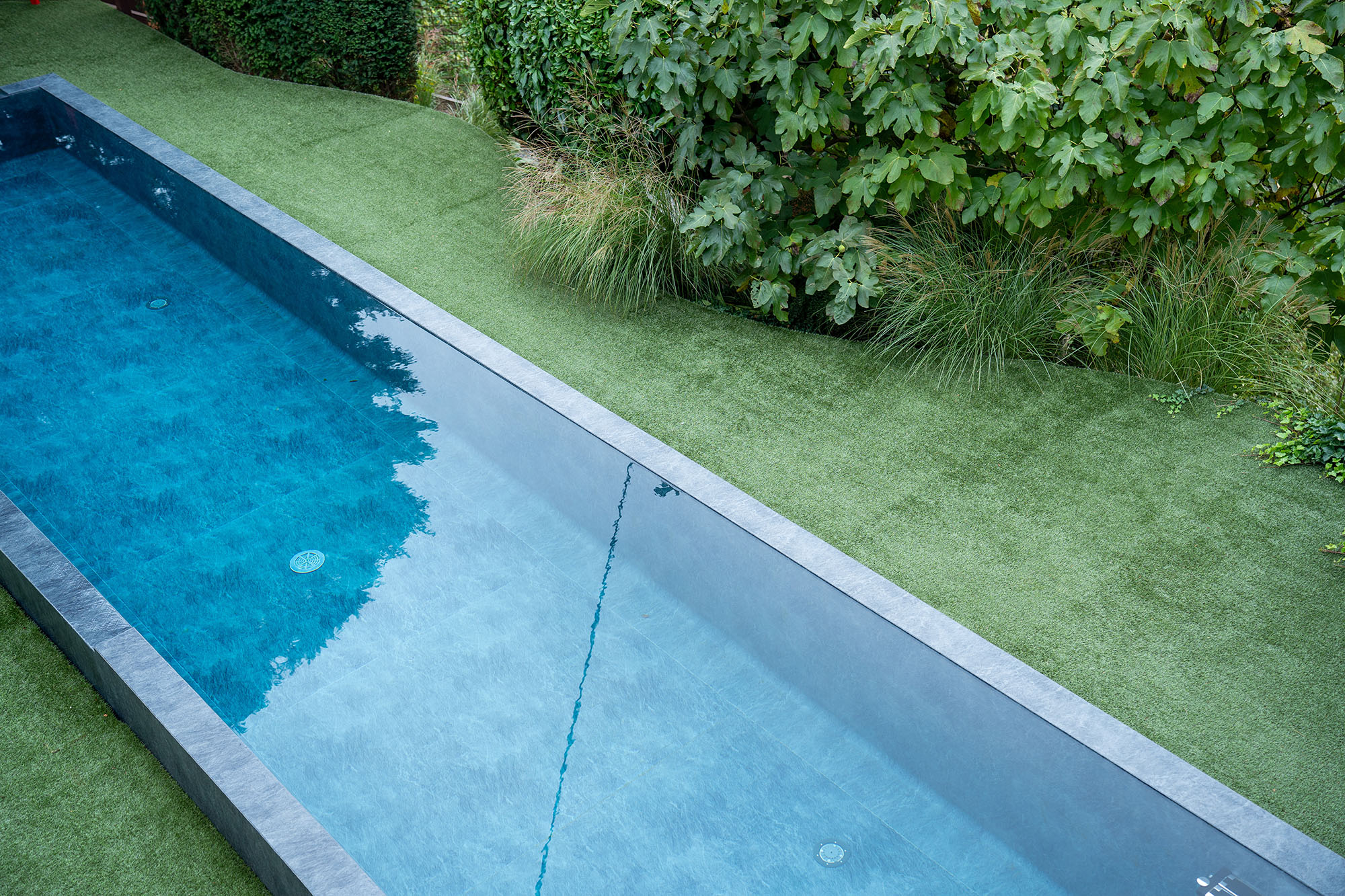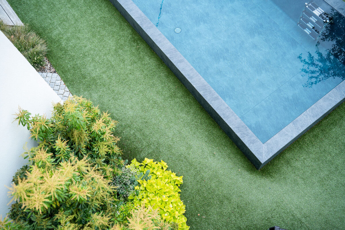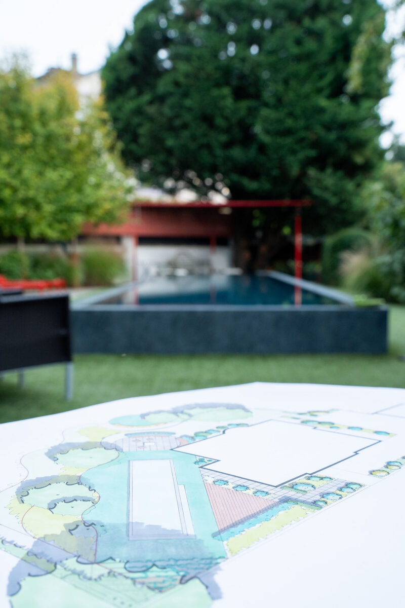 Le jardin offre aujourd’hui une surprise totale : un ouvrage sculptural, atypique et harmonieux. Bassin cascade, piscine, terrasse sur pilotis et lieux intimistes se succèdent, tandis que les terrasses fonctionnelles offrent de magnifiques points de vue. L’originalité du projet réside dans la typologie du terrain et la manière dont les espaces ont été pensés pour créer un ensemble cohérent et spectaculaire.